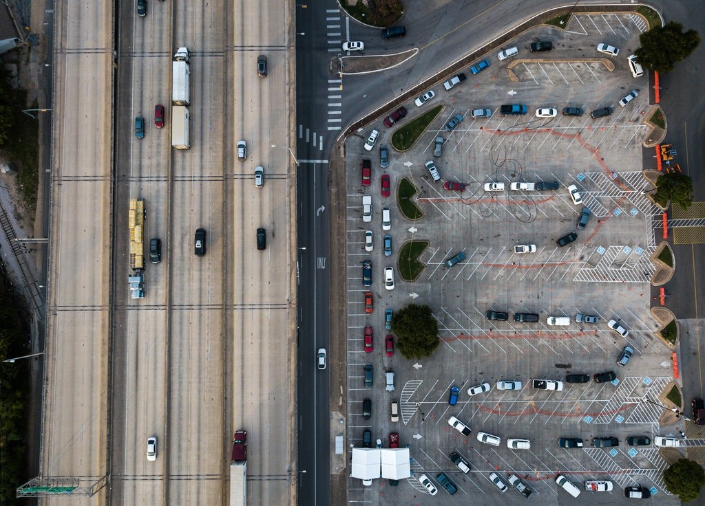 △在上周的得克萨斯州奥斯汀,车辆排队等待病毒检测