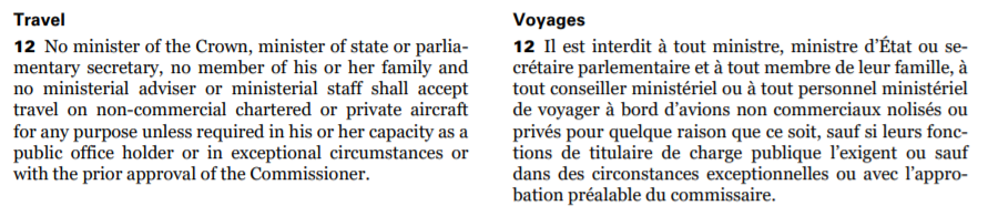 △加拿大《利益冲突法》中有关于内阁成员及其家人、助手不得乘坐私人飞机的明文规定