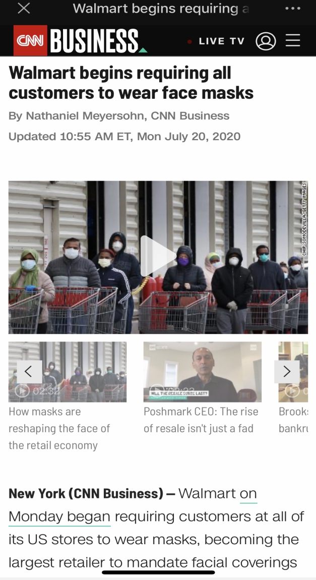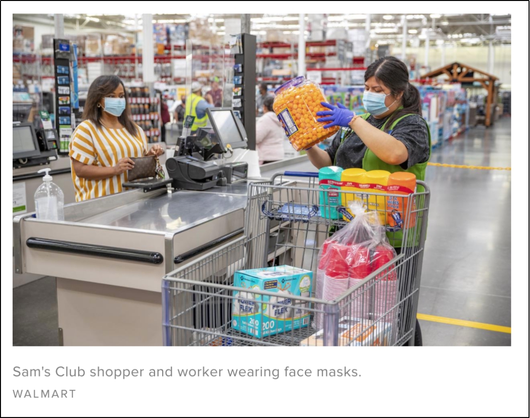 △沃尔玛要求顾客从7月20日起必须佩戴口罩