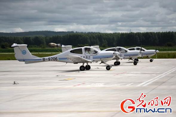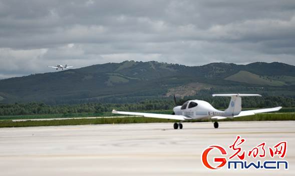 内蒙古扎兰屯成吉思汗机场,飞行学员们正在驾驶训练机进行飞行训练。光明网记者 潘迪摄