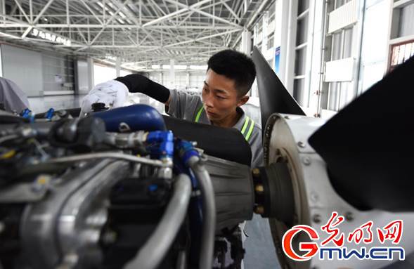 中国民航大学内蒙古飞行学院的学员正在进行通用飞行器维修训练。光明网记者 潘迪摄