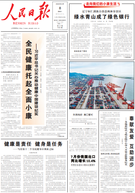 全民健康托起全面小康。从明年开始,我国将进入“十四五”时期,在全面建成小康社会基础上开启全面建设社会主义现代化国家新征程。在以习近平同志为核心的党中央坚强领导下,14亿中国人民满怀对美好生活的无限向往,阔步迈向中华民族伟大复兴!