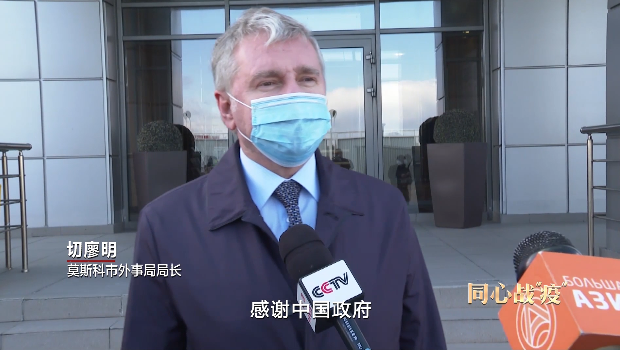 莫斯科市外事局局长 切廖明:感谢中国政府在我们如此艰难的时刻,提供咨询帮助,并且向我们捐赠医疗物资。