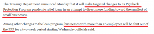当地时间22日,白宫宣布了对PPP计划的改革措施,试图将更多资金投向最困难的小企业。其中规定,从2月24日至3月9日的两周内,只有员工少于20人的企业才能申请PPP贷款。