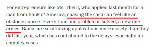《纽约时报》形容,对泰尔这样的小企业主来说,申请贷款就像是一场“障碍赛”:每当刚刚解决一个问题,就会有新的问题出现。