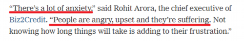 随着3月31日最后期限的临近,一些专业人士担心,PPP改革措施所增加的复杂性可能会导致一些贷款机构退出该计划。很多申请PPP贷款的小企业主也日感焦虑,担心问题无法在一个多月时间里及时解决。用Biz2Credit借贷公司首席执行官罗希特·阿罗拉的话说:“人们感到愤怒、不安和痛苦。他们不知道需要多久才能解决问题,这正在增加他们的挫败感。”