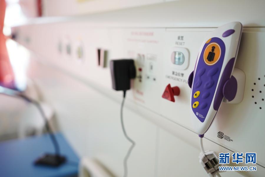 安心、温馨,这是记者对病房的第一印象。一间病房设置6张床位和一个卫生间,病床分两排,每张床配有一把椅子、一个床头柜和一张床上桌,床上铺盖一套浅色碎花寝具,床头背靠的墙面上配备各类医用检测仪器,病房内还有智能生态仪器,方便医护人员测试病患情况。