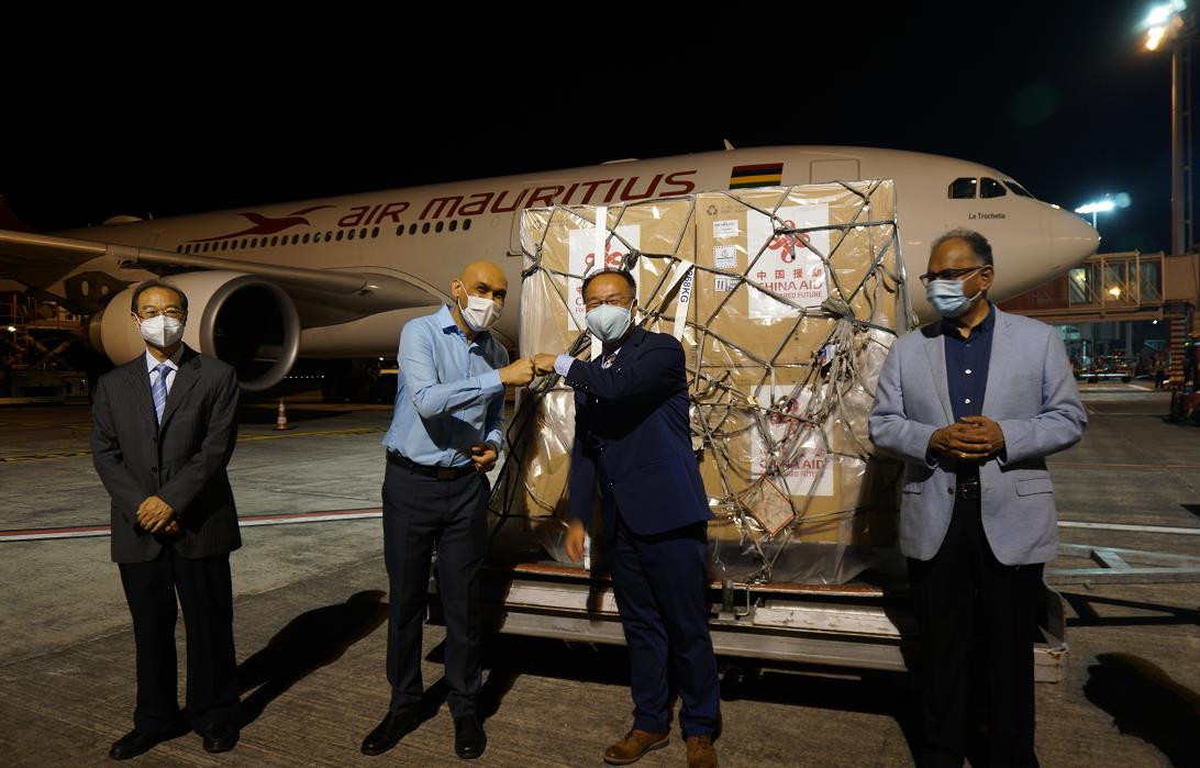 毛里求斯近期新冠肺炎疫情复发,本地病例猛增,迫切需求新冠疫苗。中国高度重视毛方需求,紧急向毛提供一批中国国药集团新冠疫苗。当地时间4月13日晚,中国援助的新冠疫苗运抵拉姆古兰爵士国际机场,毛里求斯外交部长艾伦·加努、卫生部长贾古特帕尔等亲赴机场迎接。