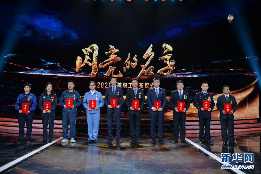 2021年“最美职工”在发布仪式上合影(4月22日摄)。新华社发(吴凡 摄)