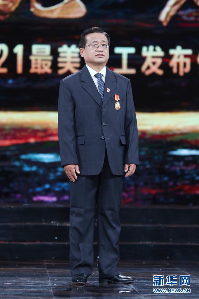 怒江美丽公路股份有限公司总工程师、云南省桥梁专家和技术带头人马健在北京举行的2021年“最美职工”发布仪式现场(4月22日摄)。新华社发(吴凡 摄)