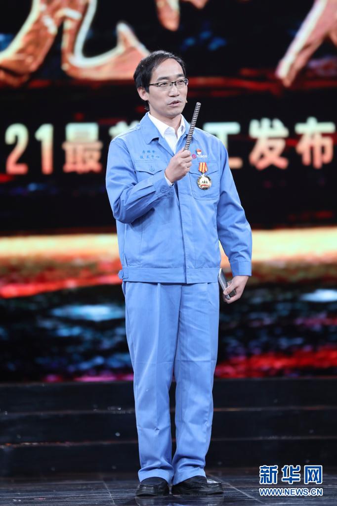 中国宝武太钢集团山西太钢不锈钢股份有限公司技术中心首席研究员李国平在北京举行的2021年“最美职工”发布仪式现场(4月22日摄)。新华社发(吴凡 摄)