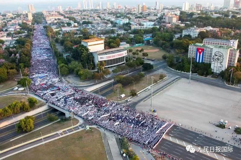 5月1日,古巴民众在哈瓦那参加“五一”国际劳动节集会游行。古巴多地5月1日举行“五一”国际劳动节集会游行,上百万民众走上街头,反对美国对古封锁,表达爱国情感,并向古巴医疗工作者和科研人员致敬。新华社发