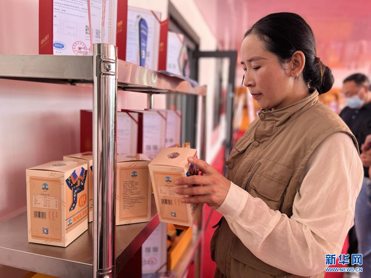 阿拉腾娜荷芽检查整理奶制品产品。新华网 李倩 摄