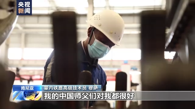 蒙内铁路高级技术员 穆萨:(中国企业的)技能传授循序渐进,做得非常好,这给肯尼亚带来了深远的影响。现如今我们可以承担日常作业,以前都是中方员工进行作业。通过创造就业,蒙内铁路实实在在地改变了我还有很多人的人生。