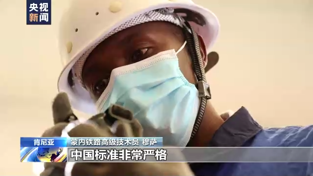 蒙内铁路高级技术员 穆萨:中国标准非常严格,这样每个人都能够按要求完成工作,避免出现失误。
