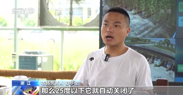 农场负责人 舒华伦:我们的风机打开了,当时我温度在室内设置了30度,室内温度到30度就自动打开了风机,包括遮阳网,到25度以下它就自动关闭了。