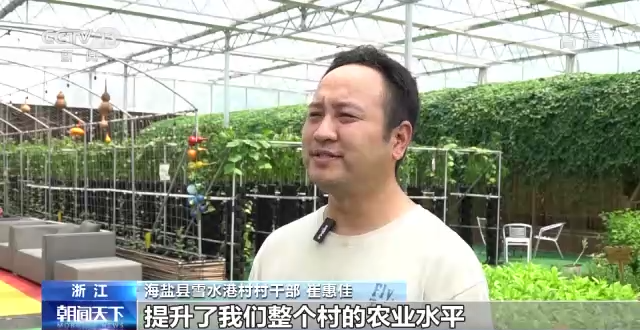 浙江省海盐县雪水港村村干部 崔惠佳:这样的新型农业,提升了我们整个村的农业水平。村民将土地租赁给这样的农场,可以增加一份租金收入,同时空闲的时候还能来这里打工,又增加了一份收入。