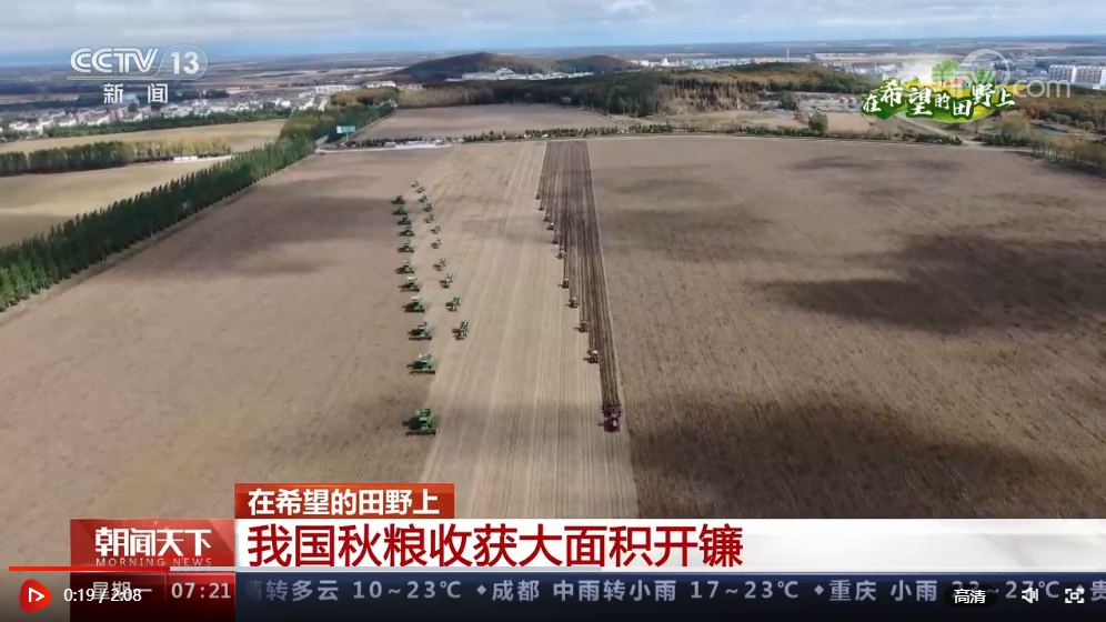央视网消息:秋粮产量占我国全年粮食产量的75%。眼下,最大的秋粮主产区东北地区进入集中收获期,标志着秋粮大面积收获全面展开。