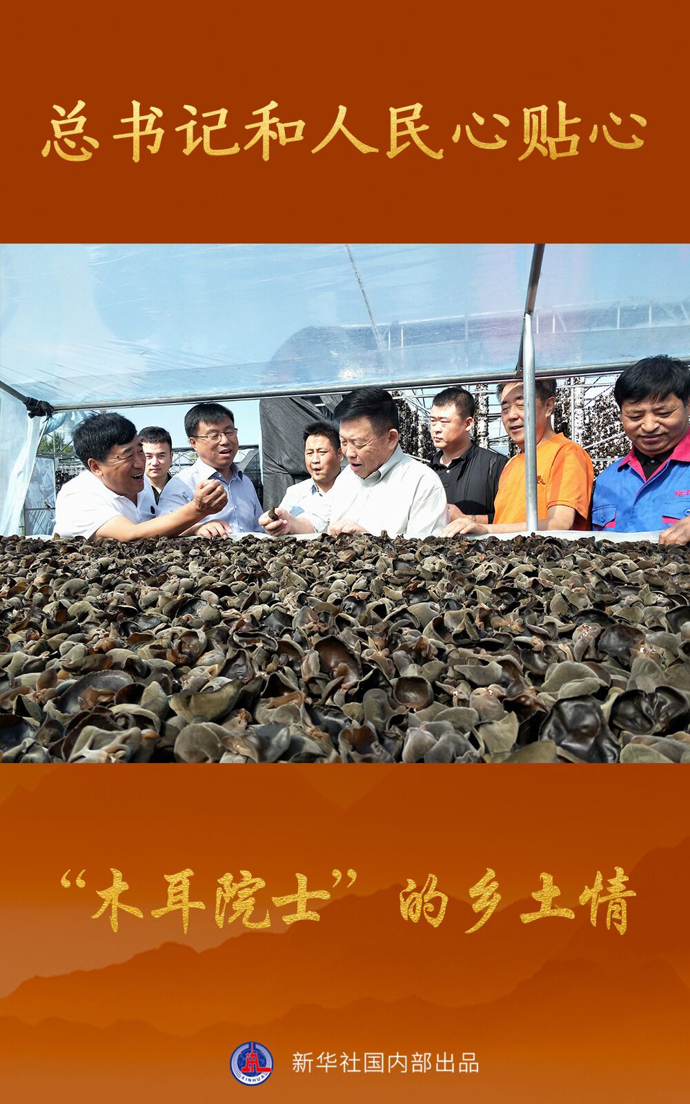 2020年4月20日,习近平总书记来到柞水县金米村考察,走进村培训中心、智能联栋木耳大棚,了解木耳品种和种植流程,询问木耳价格、销路和村民收入等,夸奖他们把小木耳办成了大产业。