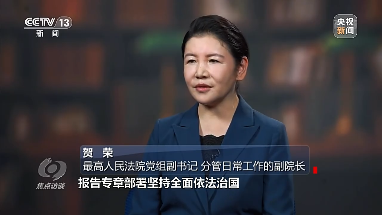 最高人民法院党组副书记、分管日常工作的副院长 贺荣:报告专章部署坚持全面依法治国,推进法治中国建设的战略任务,凝聚着全党全国的高度共识,充分彰显法治是治国理政的基本方式,是国家治理体系和治理能力的重要依托,在我国社会主义法治建设史上具有里程碑意义。