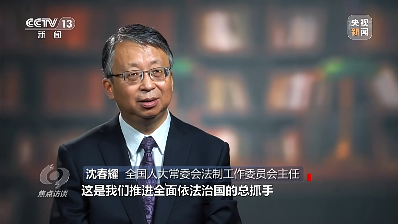 全国人大常委会法制工作委员会主任 沈春耀:建设社会主义法治国家,这是我们的一个奋斗目标,很关键的是中国特色社会主义法治体系,这是我们推进全面依法治国的总抓手。具体包括五个子体系,要形成完备的法律规范体系、高效的法治实施体系、严密的法治监督体系、有力的法治保障体系和完善的党内法规体系,把法治领域从全过程各领域各方面都概括进去。