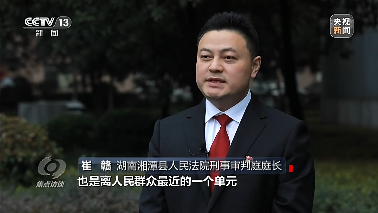 湖南湘潭县人民法院刑事审判庭庭长 崔赣:我觉得法庭作为法院最小的一个单元,也是离人民群众最近的一个单元,我们要用好法庭法治保障的武器,用更真挚的感情去为老百姓服务。