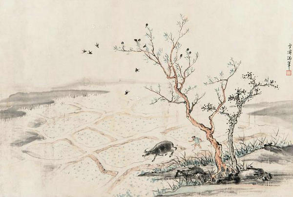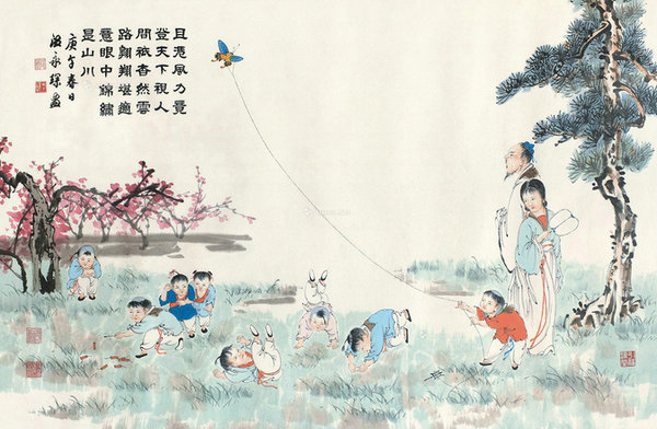 Flying Kite, by painter Wen Yongchen. [Photo/Artron.net]