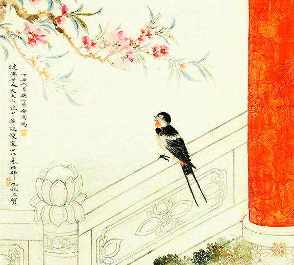 Flower and Swallow, by Zhu Meicun and Lu Yifei. [Photo/Artron.net]