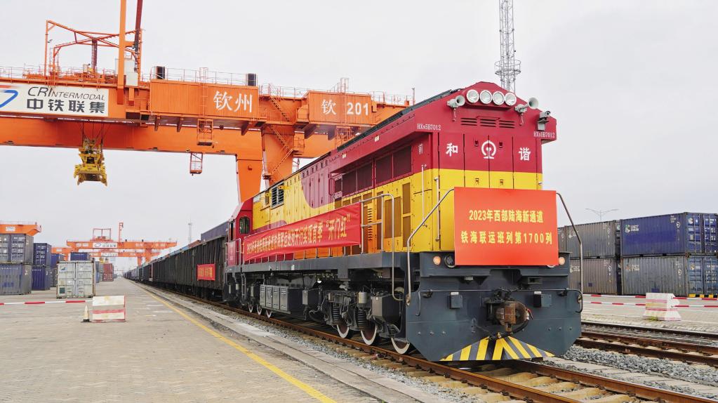 一列载满印尼起酥油、越南香蕉干等货物的海铁联运班列,3月17日从广西钦州铁路集装箱中心站发出,预计2天后到达重庆团结村站。至此,2023年西部陆海新通道第1700列海铁联运班列成功发车,提前完成一季度目标。
