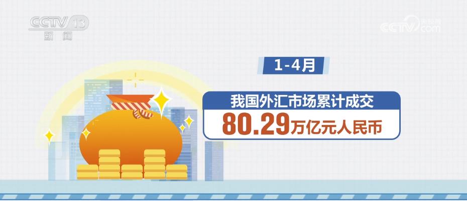 1月—4月,我国外汇市场累计成交80.29万亿元人民币。我国外汇市场交易保持活跃,市场运行平稳有序。