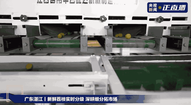今年,“田头小站”新升级了全自动流水线。荔枝被倒入分拣机,机器对其进行自动清洗、预选、风干、分流等步骤,最后按照果实的大小进行分类包装,变成一箱箱成品荔枝就可以放入冷库进行冷藏。