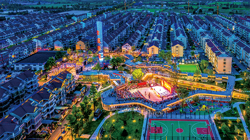 浙江省嘉兴市嘉善县在推进“千万工程”中,坚持以人为本、共建共享,从群众需要出发推进农村人居环境整治,为村民算好共富账、民生账、生态账三本“幸福账”。图为嘉善县大云镇缪家村幸福广场夜景。 浙江省委宣传部供图