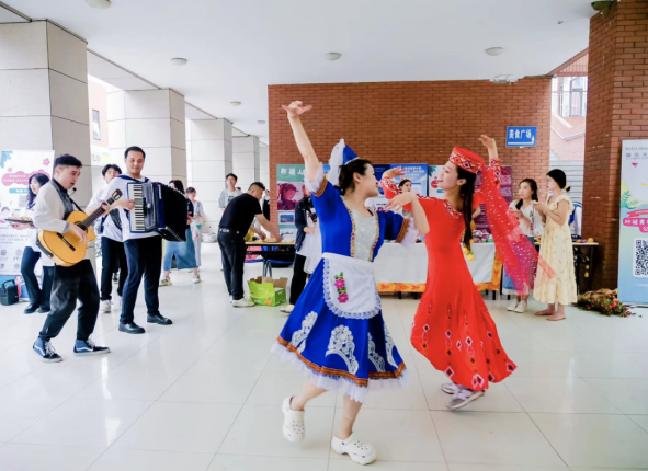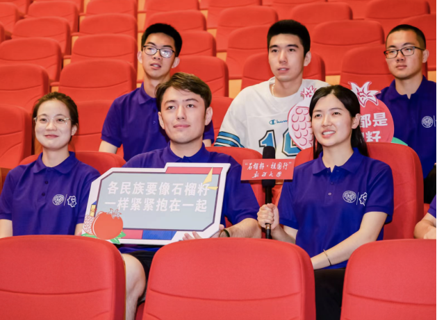 5月31日,“石榴籽 祖国行”新疆大学代表团来到南开大学。在故事分享会上,王彦臣、李姝洋、迪力亚尔·迪力夏提同学向南开大学青年学子讲述了“断臂男孩”阿卜杜外力·阿卜杜拉、“党徽大叔”阿布都加帕尔·猛德和“时代楷模”拉齐尼·巴依卡的故事。在文艺大舞台上,新疆大学代表团各民族同学通过展示新疆特色舞蹈“木卡姆”、民族器乐“库布孜”,向南开大学师生展现大美新疆热情好客、能歌善舞的地域特色。