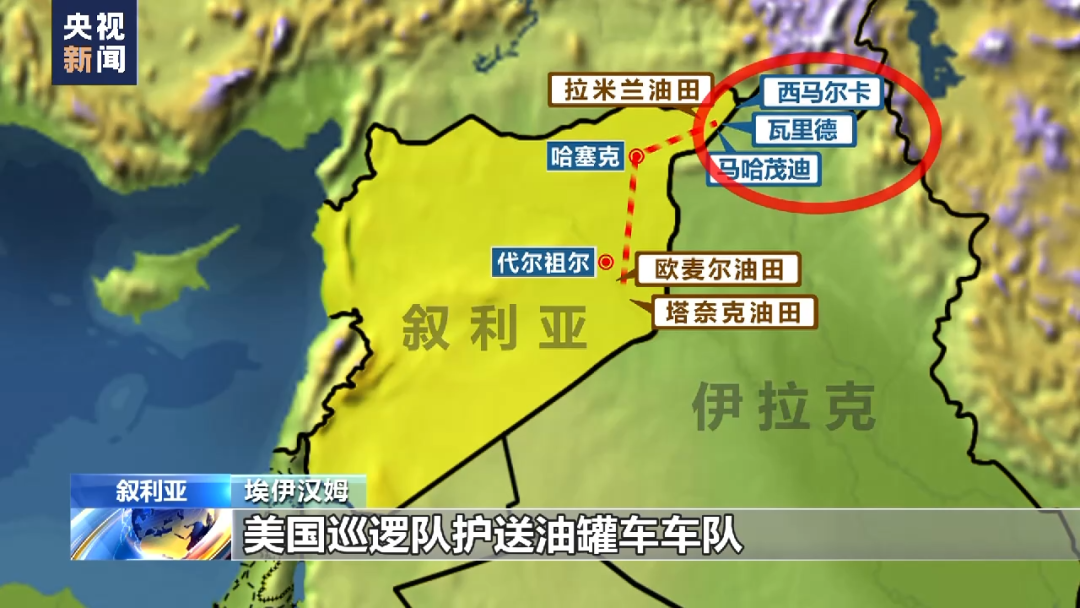 根据埃伊汉姆汇总的信息,代尔祖尔省的欧麦尔油田、塔奈克油田因为储油量丰富,成为美军盗采石油的主要来源。这两个油田也成为美军军事基地。
