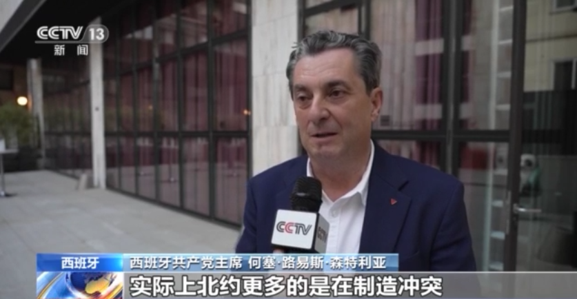 西班牙共产党主席 何塞·路易斯·森特利亚:我们非常担心北约持续进行军演,只有美国会说北约是在维护和平,实际上北约更多的是在制造冲突。俄乌冲突没有军事解决方案,只有在联合国框架内的和平谈判这一条路,因此欧盟必须停止向乌克兰输送武器。今天向乌克兰输送的武器,明天就可能会被用来对付欧盟本身和欧洲人民。