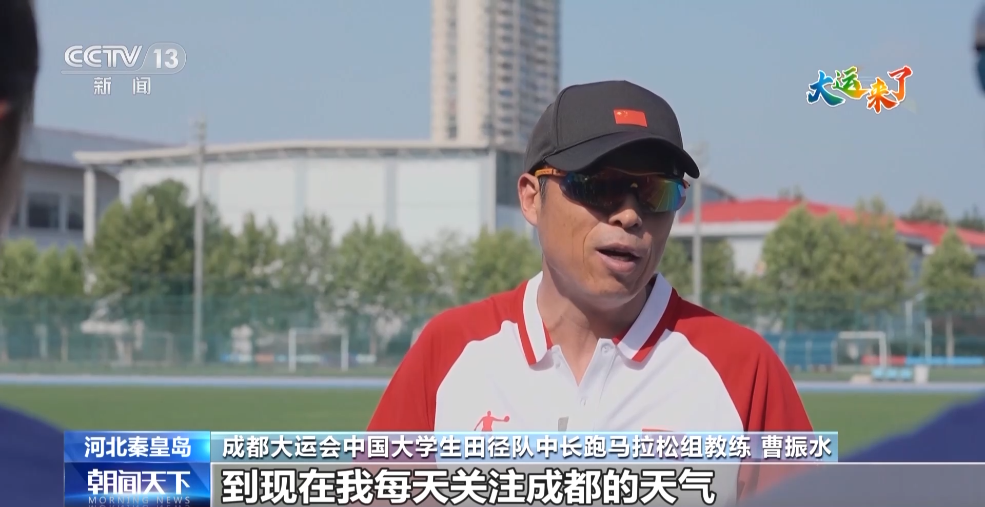 成都大运会中国大学生田径队中长跑马拉松组教练 曹振水:要适应一下热度,到现在我每天关注成都的天气,我们去这几天,大概在34、35(摄氏)度。还得从心理上、身体上包括实力上做一下准备。