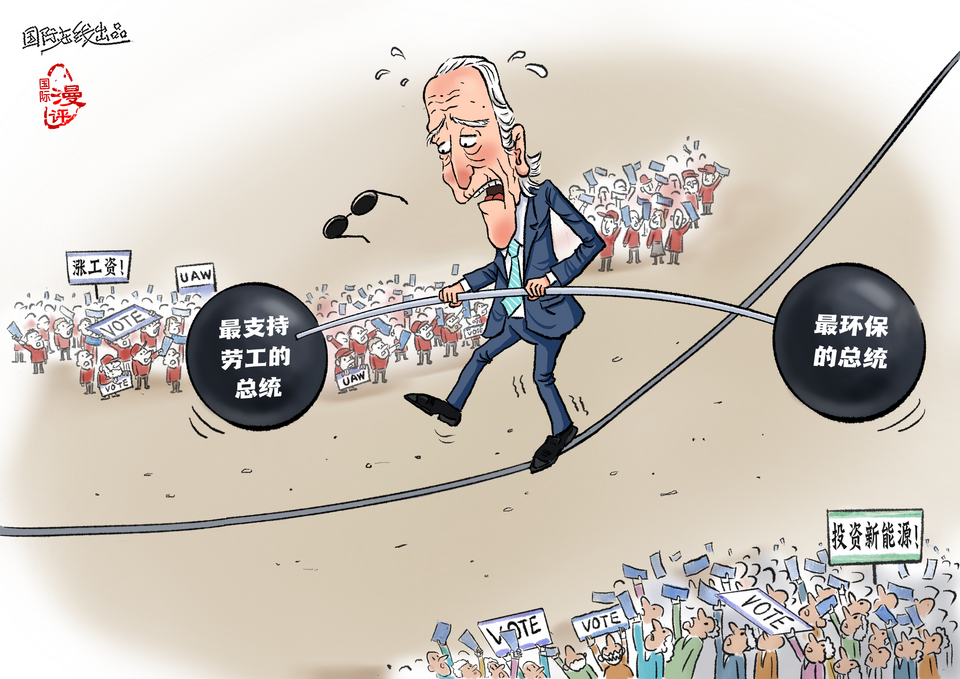美国汽车工人联合会(UAW)连日来举行大规模罢工行动,要求加薪、减少工作时间、增加福利。而在企业看来,美国汽车行业正面临技术变革,更需斥巨资推进电动化、智能化转型,同意工会的要求所承担的成本上涨“无异于自杀”。美国“政治新闻网”认为,正寻求在明年大选中获得连任的拜登被送上“政治钢丝绳”。他现在既要做“最支持劳工”的总统,又要做“最环保”的总统。