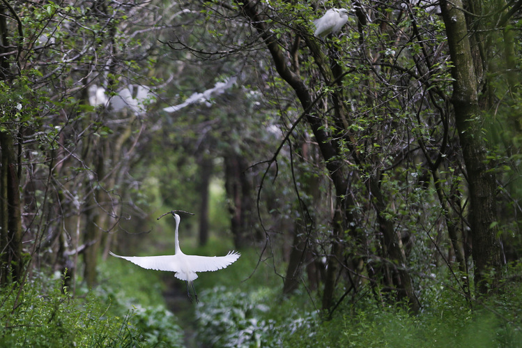 △泗洪洪泽湖湿地保护区观鸟园鹭鸟飞翔