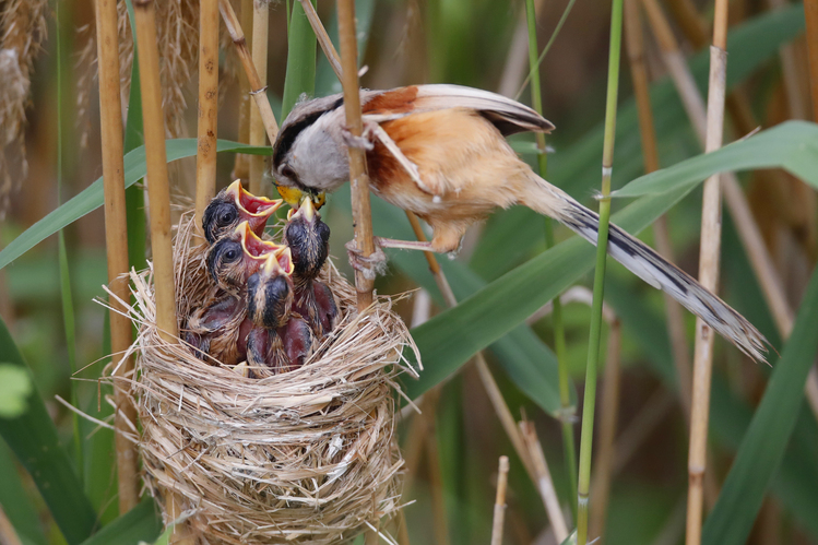 △“鸟中熊猫”震旦鸦雀在泗洪洪泽湖湿地芦苇荡育雏