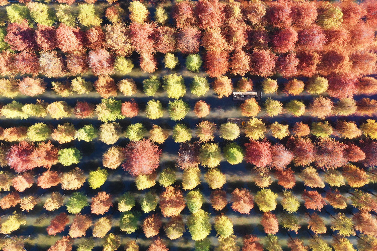 △泗洪洪泽湖湿地保护区水上杉林如画