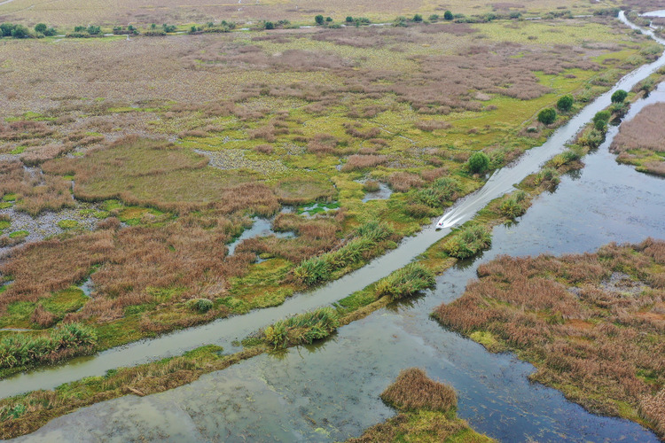 记者乘着快艇在江苏省泗洪洪泽湖湿地国家级自然保护区(以下简称“洪泽湖湿地保护区”)航道里穿行,时有鱼儿跃出清澈的湖水,各种不知名的水鸟从芦苇丛中一掠而过。