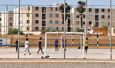 卡亚俄绿色海岸公路尽头,是项目方修建的休闲娱乐区——圣洛伦索广场。下午阳光正好,两个小型足球场上有不少青少年在踢足球。一旁的小公园里,当地居民悠闲地牵着宠物狗散步。公路边的自行车道上,不少骑行爱好者骑着自行车一闪而过。