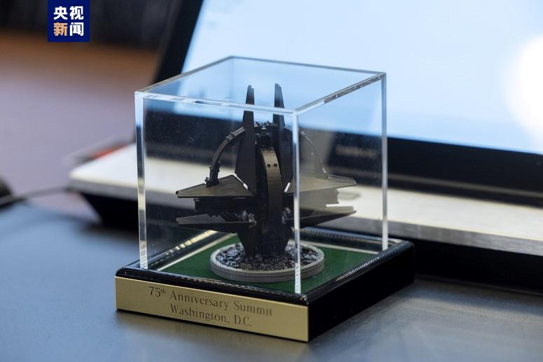 △4月3日北约外长会现场庆祝成立75周年的纪念品