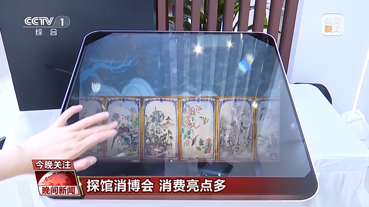 总台央视记者 张丛婧:您是不是好奇我在空气中点什么呢?往这边看,这里其实有一块“空气屏”。上面显示的是故宫博物院的线上展览,以前这些信息都会通过实体屏幕呈现,但现在这些画面可以“飘浮”在空中。而且我们还能点击和放大这个展品,不仅看得很清晰,这样的交互形式虚实结合,让文物近在眼前,又触手可及。工作人员告诉我,这其实是应用了“可交互空中成像技术”,像这样的高科技,现在已经走进了生活应用中。