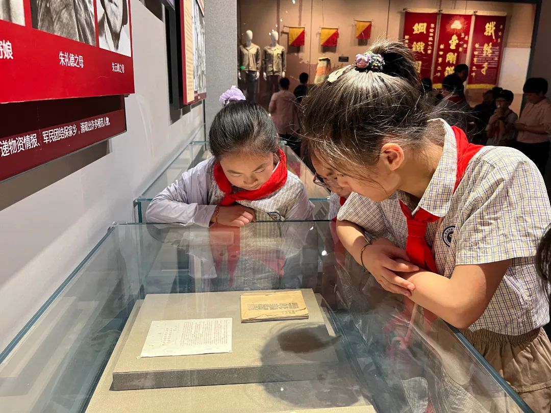 记者来到新四军纪念馆,数名小学生在家长陪同下有序参观,他们在儿童展线上观看并触摸互动。新四军纪念馆副馆长朱卓介绍,该馆专门为儿童设立一条参观路线,儿童在这条展线上可观看、可参与、可触摸,通过“发电报”“评选英雄模范”“听战歌”等项目,让爱国主义的种子在儿童心中生根发芽。朱卓告诉记者,为在展览中坚持活化革命文物,新四军纪念馆基本陈列“铁军忠魂——新四军历史陈列”展出1000件革命文物,新增600件文物首次对外展出,“馆内设立文物沉浸式情境现场教学点,通过文物互动游戏、文物深度解读互动展示等方式,尽可能让文物‘发言’。”