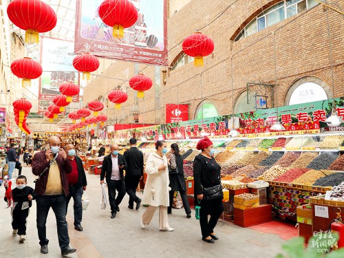△9月20日,乌鲁木齐国际大巴扎景区开门迎客。