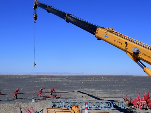 △中国石油大学(北京)克拉玛依校区2020届毕业生王首都(左)在克拉玛依钻井一线工作。