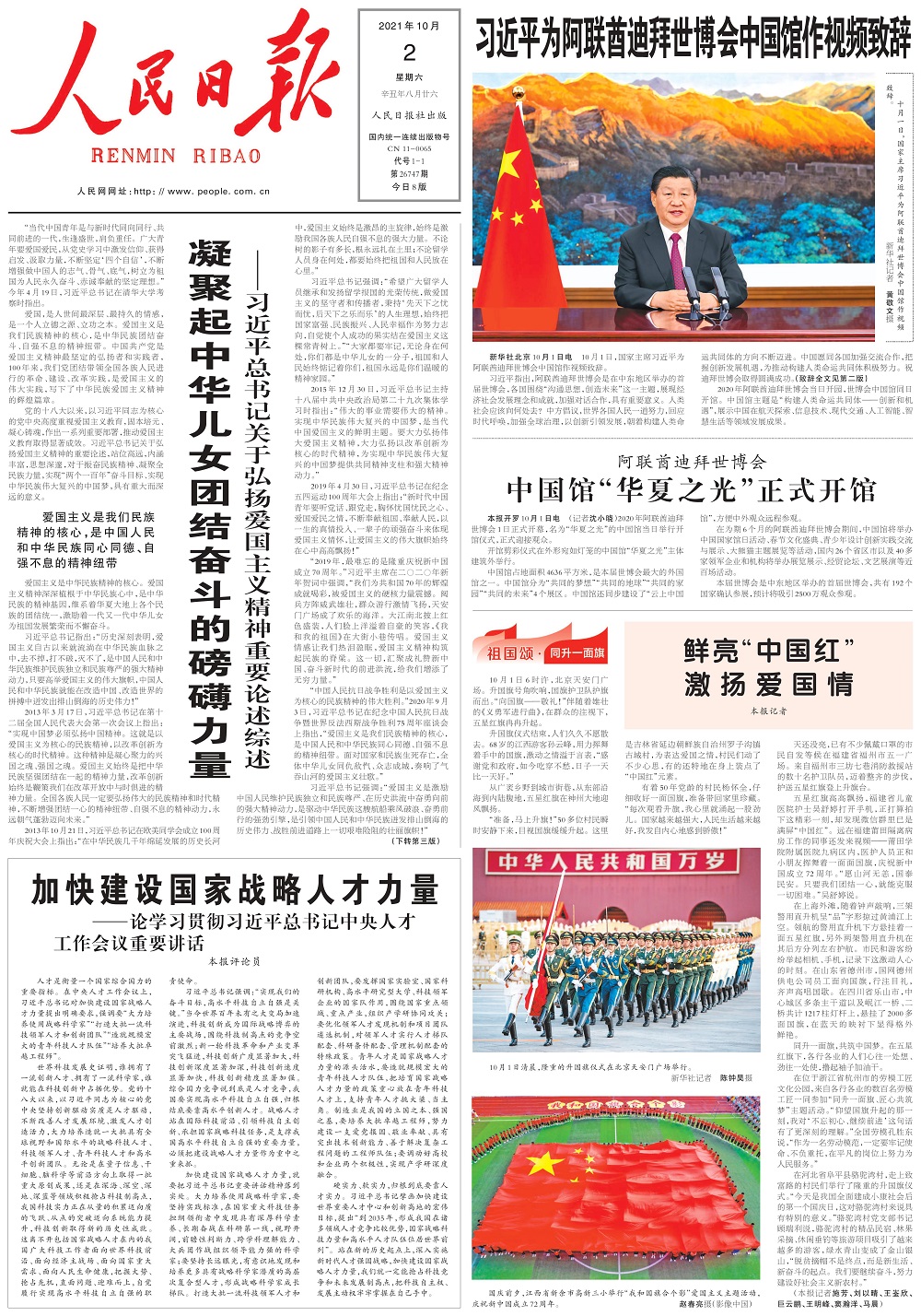 爱国,是人世间最深层、最持久的情感,是一个人立德之源、立功之本。爱国主义是我们民族精神的核心,是中华民族团结奋斗、自强不息的精神纽带。中国共产党是爱国主义精神最坚定的弘扬者和实践者,100年来,我们党团结带领全国各族人民进行的革命、建设、改革实践,是爱国主义的伟大实践,写下了中华民族爱国主义精神的辉煌篇章。