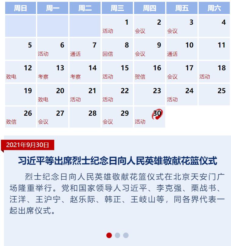 9月,习近平总书记活动行程尤为繁忙紧凑。考察调研、出席会议活动,步履不停;“云外交”日程密集;致电致信传达关切……公开报道的40余项活动日程记录着总书记的“忙碌指数”。