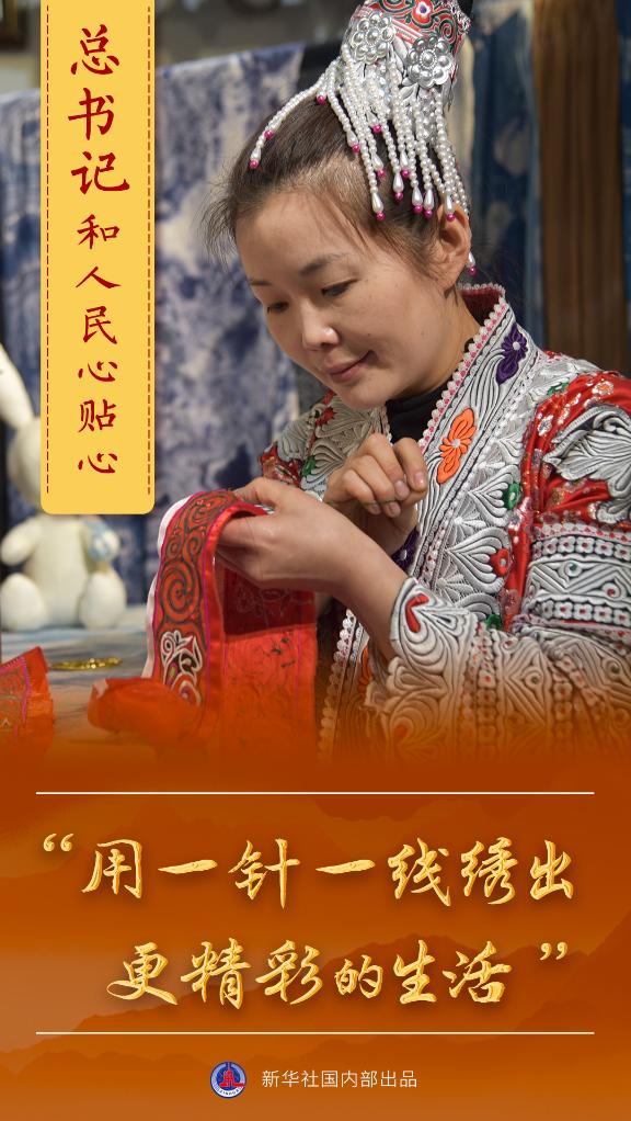 作为苗族非遗文化传承人,我很振奋,总书记的关注激活了一方水土的文化记忆。在地方党委和政府的关心支持下,我的工作室发展迅速,接到了不少省内外订单。约30名易地扶贫搬迁家庭的妇女在我的工作室当绣娘、染娘,实现了在家门口就业。我们村的特色民族手工业与乡村旅游结合,推出了不少文创产品,成为助力乡村振兴的重要产业。